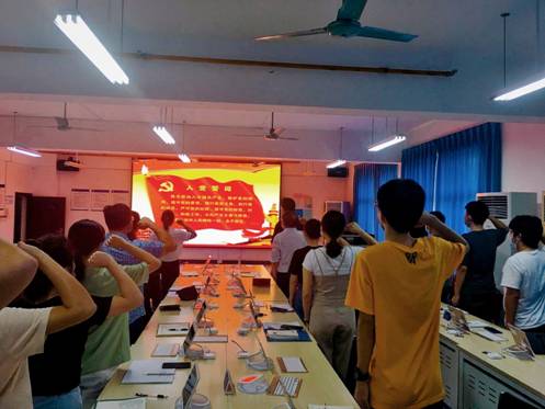 “我志愿加入中国共产党,拥护党的纲领,遵守党的章程,履行党员义务......”。全体党员胸佩党徽,在党总支李洪丽书记的领誓下,庄严的举起右拳,重温入党初心。掷地有声、铿锵有力的铮铮誓言,唤醒和激发了全体党员的党性观念,大家纷纷表示将心中怀信仰,脚下有力量,走好新时代长征路。