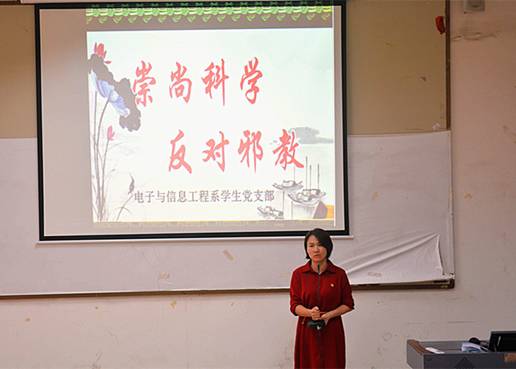 为深化法制教育,大力开展反邪教宣传,进一步发挥入党积极分子的模范带头作用。5月30日下午,我系学生党支部在1207教室组织举办了一场反邪教知识讲座。讲座由我系党总支蒋莉副书记主讲,2018级入党积极分子参加了讲座。