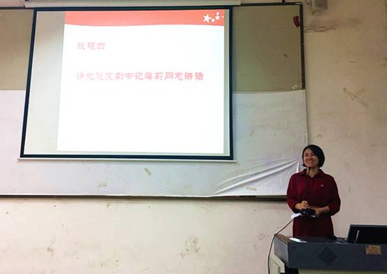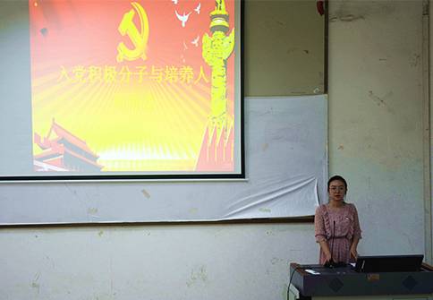 会上,宣读支部对入党积极分子培养人的安排,并逐一介绍了党员发展流程和入党条件、要求等。党总支副书记蒋莉同志讲话,要求入党积极分子在政治上、思想上、学习上时刻对照党员的标准,充分发挥先锋模范作用,并要求他们积极主动向培养联系人汇报思想、学习、生活等情况,争取早日加入中国共产党。