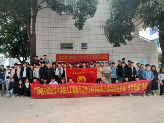 为了培养我院电子协会成员技能特长,将学有所成、学以致用,用于人民,2020年11月24日,在学院党总支统筹规划和共青团广西电力职业技术学院委员会的组织号召下,电子协会在桂林理工大学教职工宿舍区,举办走进社区“义务维修”活动。活动由我院庞春松老师指导,电子协会全体成员参加。