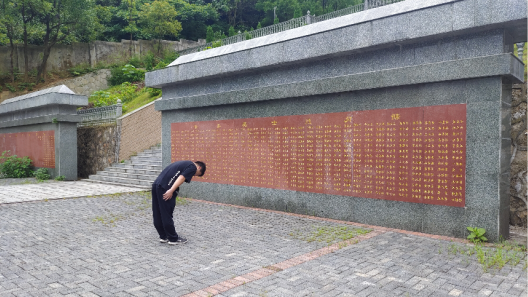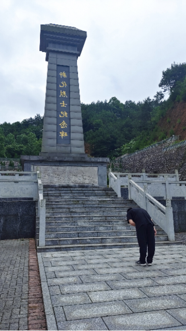 1803班刘括在烈士纪念碑前鞠躬、敬礼