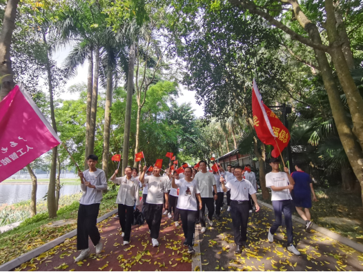 活动中,大家缓步走向烈士纪念碑前,怀着对烈士的无比崇敬之情在烈士纪念碑前朗诵红色经典、重温入党誓词,并参观了烈士纪念馆,了解两位烈士的生平事迹,了解百色起义的忠诚底色和百折不挠、向死而生的牺牲精神,感受红色基因孕育地新发展力量。随后,党员教师带领全体成员开展南湖竞走和拉歌活动,一路红歌高唱一路激情荡漾。