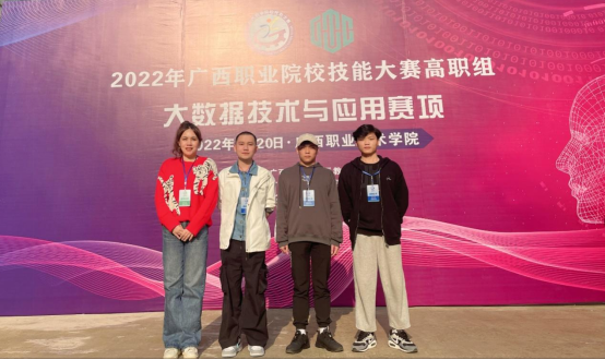 4月11日,2022年广西职业院校技能大赛“大数据技术与应用”赛项(高职组)在广西职业技术学院圆满落幕。由赵林、李倩老师指导的来自大数据技术专业学生黄铂沦、韦棕耀、王万钟,代表学校参赛并荣获一等奖,取得我校在该赛项的连续两年获得广西一等奖的好成绩。