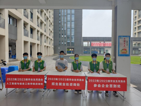 双选会现场,志愿者们积极配合党员教师、会场相关工作人员一起维护秩序、做好引导,帮助企业布置展位、分发资料等,为双选会的有序进行发挥了极大的作用,得到了企业和广大师生的肯定。在双选会圆满结束后,志愿者们自发参与会场整理和卫生清扫工作。
