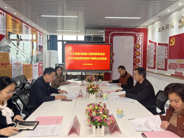 按照上级部署要求和学校工作安排,2月22日,我院党总支召开2022年度党员领导干部民主生活会。会议围绕“全面贯彻习近平新时代中国特色社会主义思想,深刻领悟‘两个确立’的决定性意义,增强‘四个意识’、坚定‘四个自信’、做到‘两个维护’,团结带领党员干部群众以奋发有为的精神贯彻落实党的二十大作出的重大决策部署”这一主题,紧扣工作实际,深入进行自我对照检查、党性分析,认真检视问题和不足,严肃开展批评和自我批评,进一步把思想和行动统一到党的二十大精神上来。我院领导班子全体成员参会,学校党委副书记龙伟忠、学工处处长陈丽华和学工处综合科科长谭永锋莅临指导,我院党总支书记赵林主持会议。