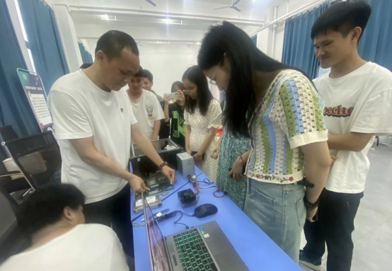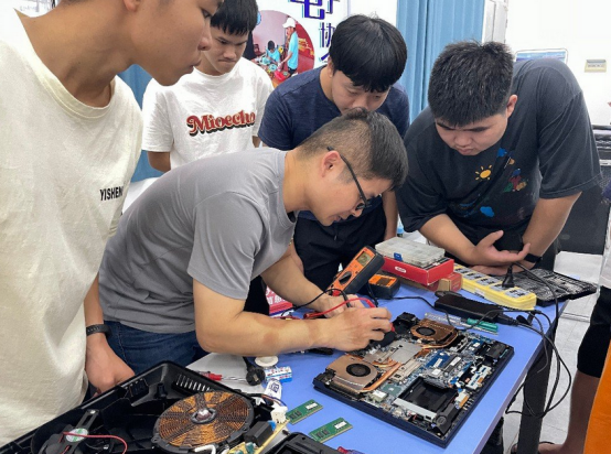 活动现场,党员教师带领学生志愿者热情接待拿着电脑、电水壶、电饭煲等家电前来维修的学生和教职工,认真检测电器存在的问题,熟练运用专业技术知识查线路、看电路、找元件、拆卸、检测、维修和安装等系列操作完成对一件件电器的维修任务。两个小时的时间内,近10件废旧家电又一次“重获新生”。