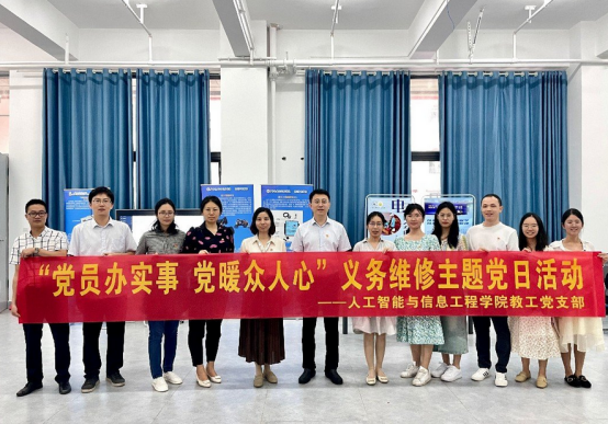 为积极响应党的号召,在深入开展学习贯彻习近平新时代中国特色社会主义思想主题教育中,2023年5月25日,人工智能与信息工程学院教工党支部开展了“党员办实事 党暖众人心”义务维修主题党日活动。该活动主要面向学院师生,为他们提供便利的方式来处理出现故障的电器,是将学习党的二十大精神转化为服务群众的暖心行动。